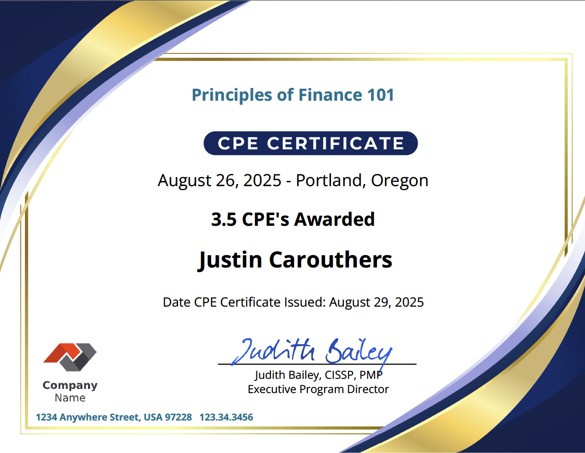 Below you will find a few examples of creative Certificates of Continuing Education designed and distributed by actual SimpleCert customers.