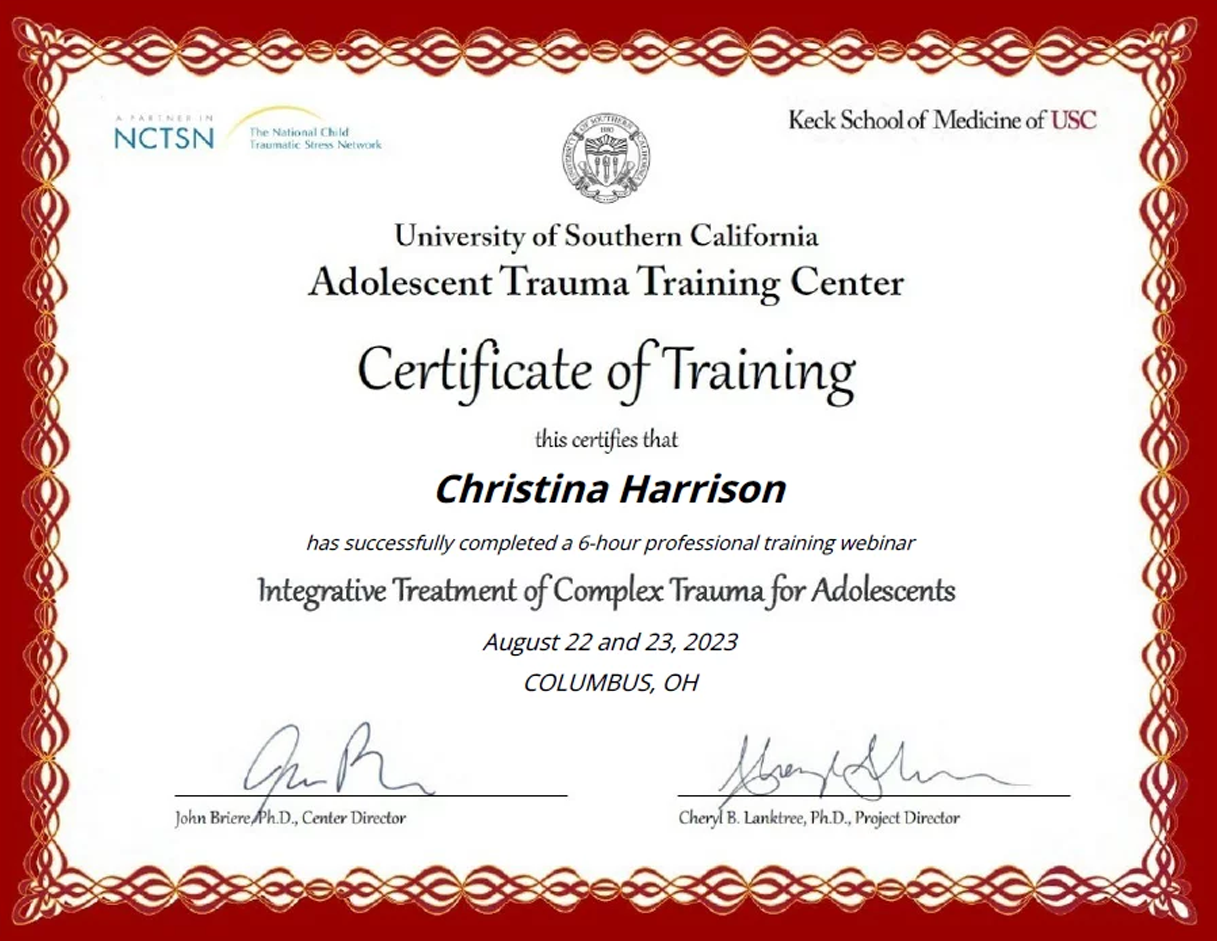 The University of Southern California Keck School of Medicine’s Adolescent Trauma Training Center trains clinicians throughout the United States on the evaluation and treatment of Trauma, including Substance Abuse. As a part of continuing education classes conducted by the USC ATTC, certificates of completion are distributed to courses conducted both online and in person.